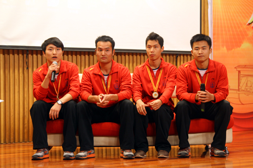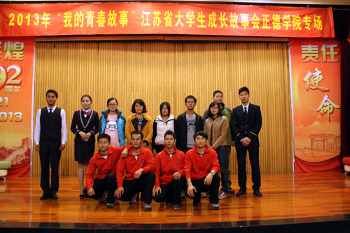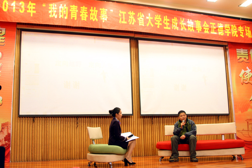 11月13日下午,由共青团江苏省委主办、片区高校承办的2013“我的青春故事”江苏省大学生成长故事会正德专场在91自拍 报告厅隆重举行。来自91自拍 民用航空系“飞行之星”吴晓晨、“职业规划之星”工商管理系王高灵、江苏海事职业技术学院的“职业技能之星”团队、南京视觉艺术职业技术学院的“支教之星”海雯、南京机电职业技术学院的“行动之星”刘桐倾情讲述了他们的成长经历和感悟,受到在场300余名师生的热烈欢迎。