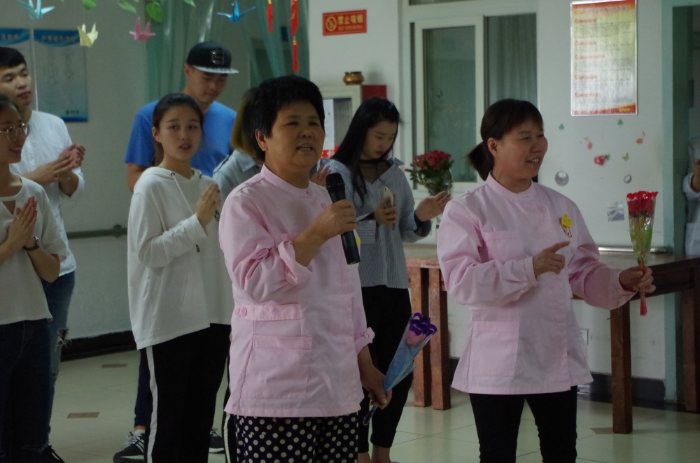 志愿者到达敬老院后,为老人们送上母亲节的礼物,志愿者们准备了热情的舞蹈,并邀请老人一起来活动筋骨,做一些简单的小动作,现场笑声一片。还有同学为老人们演唱当年的红歌《大刀向鬼子们的头上砍去》,会唱这首歌的老人也跟着同学们一起合唱,护工阿姨也为大家演唱了几首红歌。
