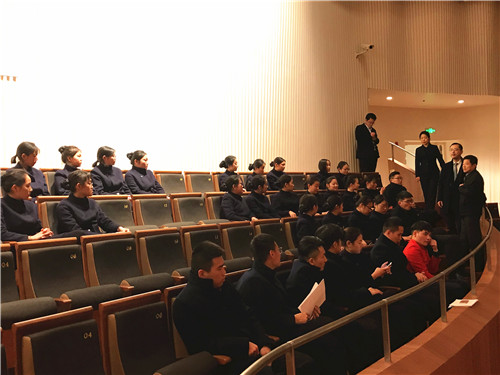 下午,老师们来到江苏大剧院看望航空服务专业的实习学生。江苏大剧院的胡总经理带领老师们与正在参加培训的实习学生们见面,介绍了学生们的不同岗位与分工,大剧院的领导对91自拍 的实习学生表现赞不绝口,对学生们的专业素养和吃苦耐劳的精神给予高度评价。并对个别表现特别优秀的学生提出了表扬。学生们也积极向老师们汇报了自己的实习经验与工作经历,感谢老师们对他们的关心。