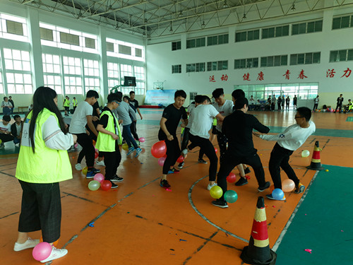 每个系分别派出队员参与比赛,参赛项目有:十人九足,心心相映,踩气球,乒乓球接力,你的地盘我做主,袋鼠跳等游戏,同学们都踊跃参与。整个竞赛气氛激烈又不失轻松愉快,参赛同学们尽力完成每一项项目,全身心的投入在比赛中,围观同学不时发出欢快的笑语,同学们将青春的光芒发挥到极致,充分感受到友谊第一比赛第二的宗旨!