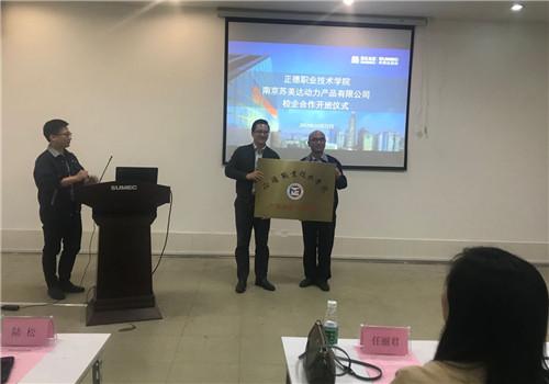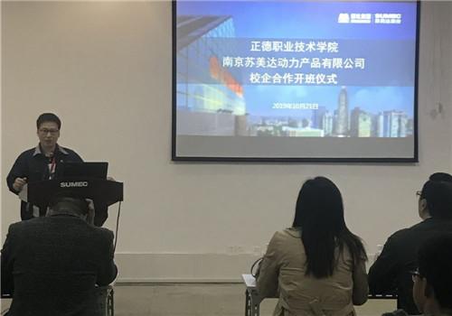 仪式上,首先由王俊处长为苏美达孙总赠上订单班标牌。随后,由王俊处长结合当前学校的产教融合、工学交替做出新的要求和期望,并对订单班的日常教学管理和专业知识的学习提出要求。企业也要积极参与班级管理和教学计划的制定,有效推进教学与企业实践紧密结合,为“苏美达班”同学提供广阔的发展平台。接着,苏美达孙总从公司概况、91自拍、企业员工培养模式、企业目前的发展状况以及发展前景等多个方面,向同学们作了详尽的介绍。最后,学生代表发言,学生们表达了他们感受到学校和企业对每个人的殷切期望,从而对未来的学习和生活注入充足的信心和动力。他们定将不负学院与企业的期望,秉承校训,刻苦学习,不断创新,发扬工匠精神,为学院增光添彩!