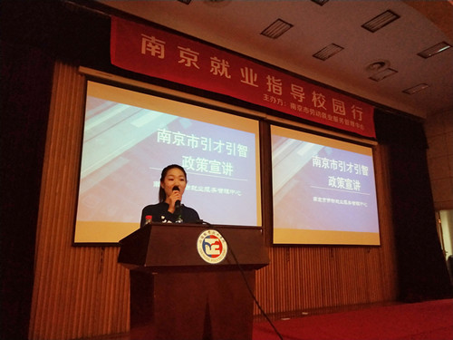 此次活动主要分为两个部分,首先由张雯紧扣大学生就业的相关问题,从面试、见习、住房、落户、创业等五个方面,系统地介绍了南京引才引智的政策。在场的同学们备受鼓舞,全面深入了解了南京在完善技能人才评价、使用、激励和服务保障机制等各方面的优惠政策,深刻感受到了南京“宁聚计划”的超强引力。