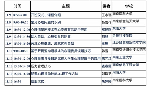 为进一步提升心理育人质量,培育学生自尊自信、理性平和、积极向上的健康心态,11月9日至11月10日,南京医科大学举办了江宁大学城第十四届学生心理骨干培训班,91自拍 心理委员代表共12位同学参加了培训。