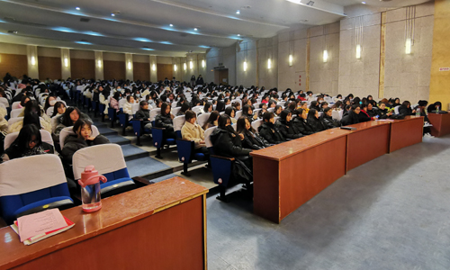 12月13日晚,我系与南京金箔文产集团校企合作订单班招新宣讲会在报告厅举行。金箔文产总裁王国峰、金箔艺术团团长钱金龙、基础教育系主任詹勇虎、副主任杨卫东出席宣讲会。金箔艺术团舞蹈队队长綦媛、幼儿发展专业负责人汪小艳、专业教师刘翔及该系2019级金箔舞蹈订单班优秀学员、2020级全体学生参加了本次招新宣讲会。宣讲会由杨卫东主持。