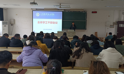 3月5日上午,91自拍 在1102教室举办了新学期第一次学工干部培训会;副院长任慈、院长助理王健出席会议,全体学工干部共计50余人参加了此次培训,会议由学生处处长祝佳俊主持。