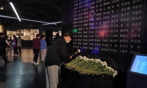 在馆内,学生们井然有序地将自己手中的白菊摆在活动前方的地上,并深深的鞠躬以表达对死难者的敬重与哀悼,整个过程庄严肃穆,引起了其他参观者的注目。献花完毕后,全体同学在大屠杀遇难日纪念馆下合影留念,此次活动画上了一个圆满的句号。
