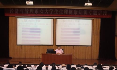 4月22日下午2:30,经济与管理系“遇见更好的自己”——女生健康知识讲座在报告厅举行,经济与管理系副主任祖国、南京市秦淮区妇幼保健所赵颖所长和夏秀梅主任,我系19级和20级女生共计200余人参加讲座。