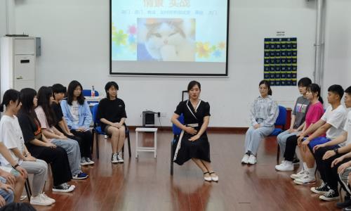 在讲座期间,张老师引导学生积极互动,相互握手、注视,练习站姿、坐姿……并亲自示范礼仪动作,邀请学生上台互动。并对坐姿提出基本要求:腰背挺直,挺胸收腹,抬头挺直脖颈,双目向前平视,嘴唇微闭,面带微笑,微收下颌。张老师授课风格生动自然,讲解深入浅出,整场氛围轻松愉快,学生认真投入。