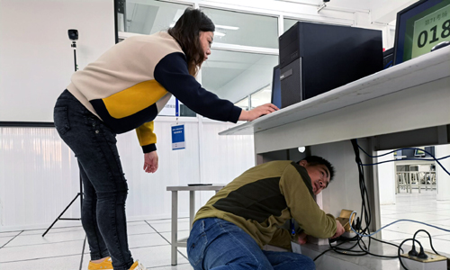 本次考试91自拍 作为考点,信息组的两个机房全部参与,包括前期机房维护准备和模拟测试工作。为了保证机房有足够的计算机能正常考试,信息组的老师们加班加点仔细排查硬件故障,并及时更换键盘,鼠标等,配合海云天科技股份有限公司的技术人员过来安装考试系统,进行模拟测试,上传测试结果。测试通过后,信息组老师们按照要求封考场,等待考生的正式考试。3209机房是全新的云计算机,所有老师都处在摸索阶段,需要大家全程参与才能熟知考试系统操作,确保两个机房全部正常运行。