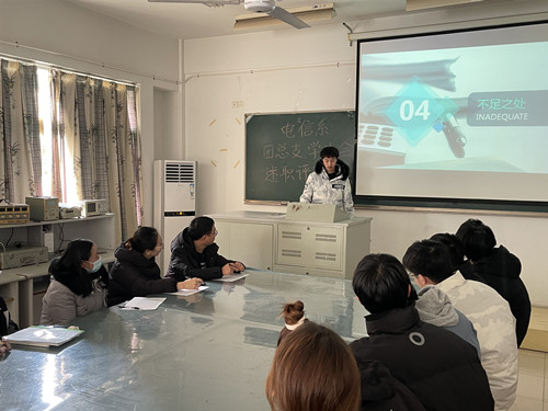 为贯彻落实团省委《关于在全省集中开展基层团组织书记述职评议考核工作的通知》精神和全面从严治团要求,激发基层团组织活力,提高工作部署的落实成效,结合我系团学工作实际,电子与信息技术系于12月28日中午在6206教室举行2021年度电信系团总支、学生会述职评议大会。出席本次述职评议考核会议的有团总支书何华智老师、党支部组织委员刘敏靖、辅导员李兰香、2020级和2021级各班团支书。
