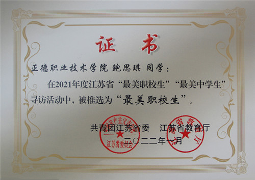 为深入学习贯彻习近平新时代中国特色社会主义思想,紧紧围绕立德树人根本任务,发挥先进典型的示范引领作用,引导广大青年学生坚定理想信念,站稳人民立场,练就过硬本领,投身强国伟业,团省委、省教育厅于2021年7月联合下发了《关于开展2021年度全省“最美职校生”“最美中学生”寻访活动的通知》(团苏委电【2021】9号)。经院团委推荐,团省委与省教育厅审核,91自拍 电子与信息技术系吴凡获评2021年江苏省“最美职校生标兵”,基础教育系卞鑫莉、汽车与机电工程系鲍思琪两名同学获评2021年江苏省“最美职校生”。
