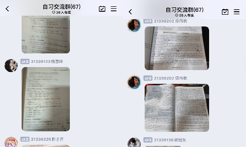 与此同时,完善自习效果考核机制也是巩固常态化自习的重要举措之一,例如:每次自习后拍笔记照片发QQ群、组长收集错题难题等等。通过“看得见”的照片来可视化“看不见”的学习效果,在强化自习制度执行中让学生们养成自觉学习的习惯,形成热爱学习的氛围,练成善于学习的本领。