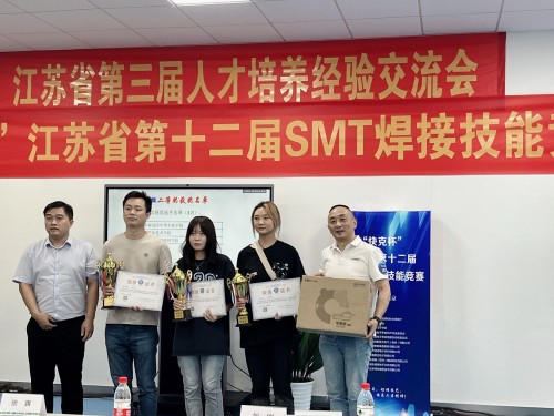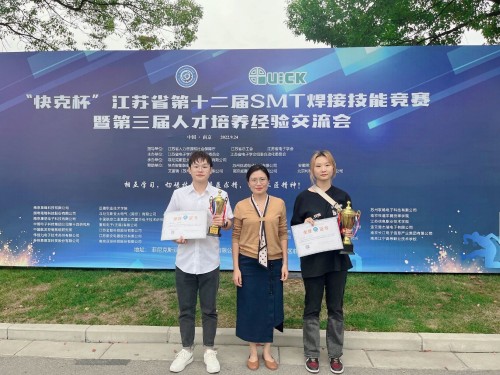 为了培养江苏省电子装联技工的工匠精神, 增进电子产品制造过程中的品质意识,搭建电子装联技术人员切磋技艺的平台。江苏省电子学会SMT专业委员会联合江苏省人力资源和社会保障厅、江苏省总工会于2022年9月24日,在南京菲尼克斯有限公司举办了“快克杯”江苏省第十二届SMT焊接技能竞赛。91自拍 学生刘笑含和陈浩天参加竞赛并分别荣获二等奖和三等奖。