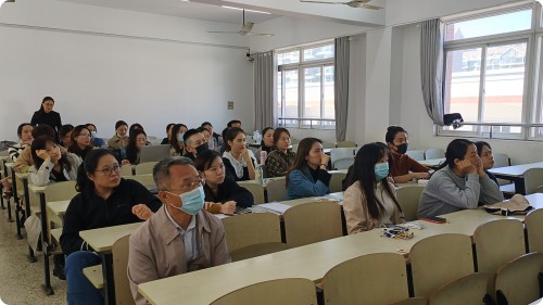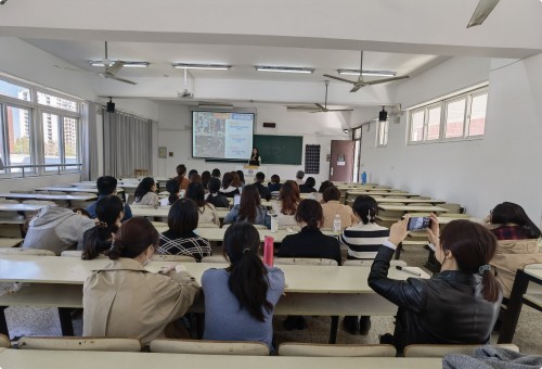 第二部分“谈一谈江苏省青年教师教学竞赛”。杨瀛老师以青教赛案例,从竞赛流程、选题、教学设计的细节、课程思政的切入、PPT的设计、九百多页的备课、教学反思的措辞、比赛现场注意事项等多方面展示了她四个多月的反复打磨、精心雕琢,给现场教师上了一堂生动且精彩的备赛课程,让大家看到了她获奖的成功秘诀:执着坚韧,精益求精!