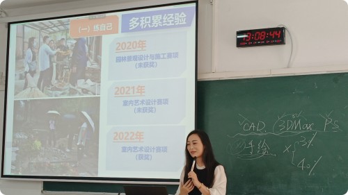 杨瀛老师的分享分为两部分,第一部分以“谈一谈江苏省技能大赛”为题介绍了自己作为指导老师如何指导学生参加省技能大赛并获得一等奖。她从赛事的背景、选手的选拔、选手的训练等方面详细讲述了备赛过程中的优秀做法和复盘思考,并着重分享了“怎么练学生”:多人同练、课内外延伸训练、结合大创项目、梯队式培养以及最后冲刺阶段与参赛选手同吃同住一个月……热爱可抵岁月漫长,正是不忘教书育人的初心,身体力行的感召学生,才能克服浮躁,甘于寂寞,取得不俗的成绩。
