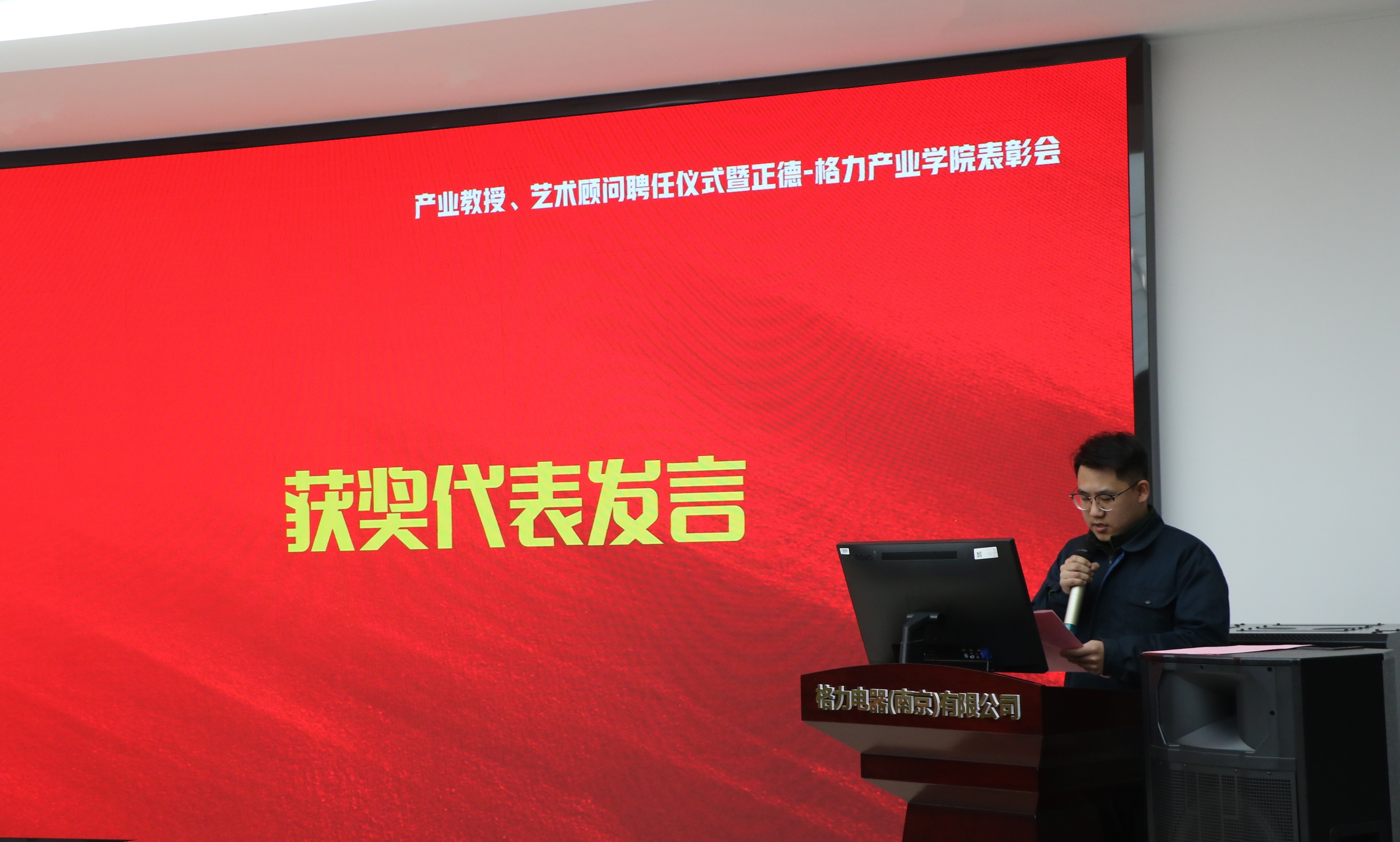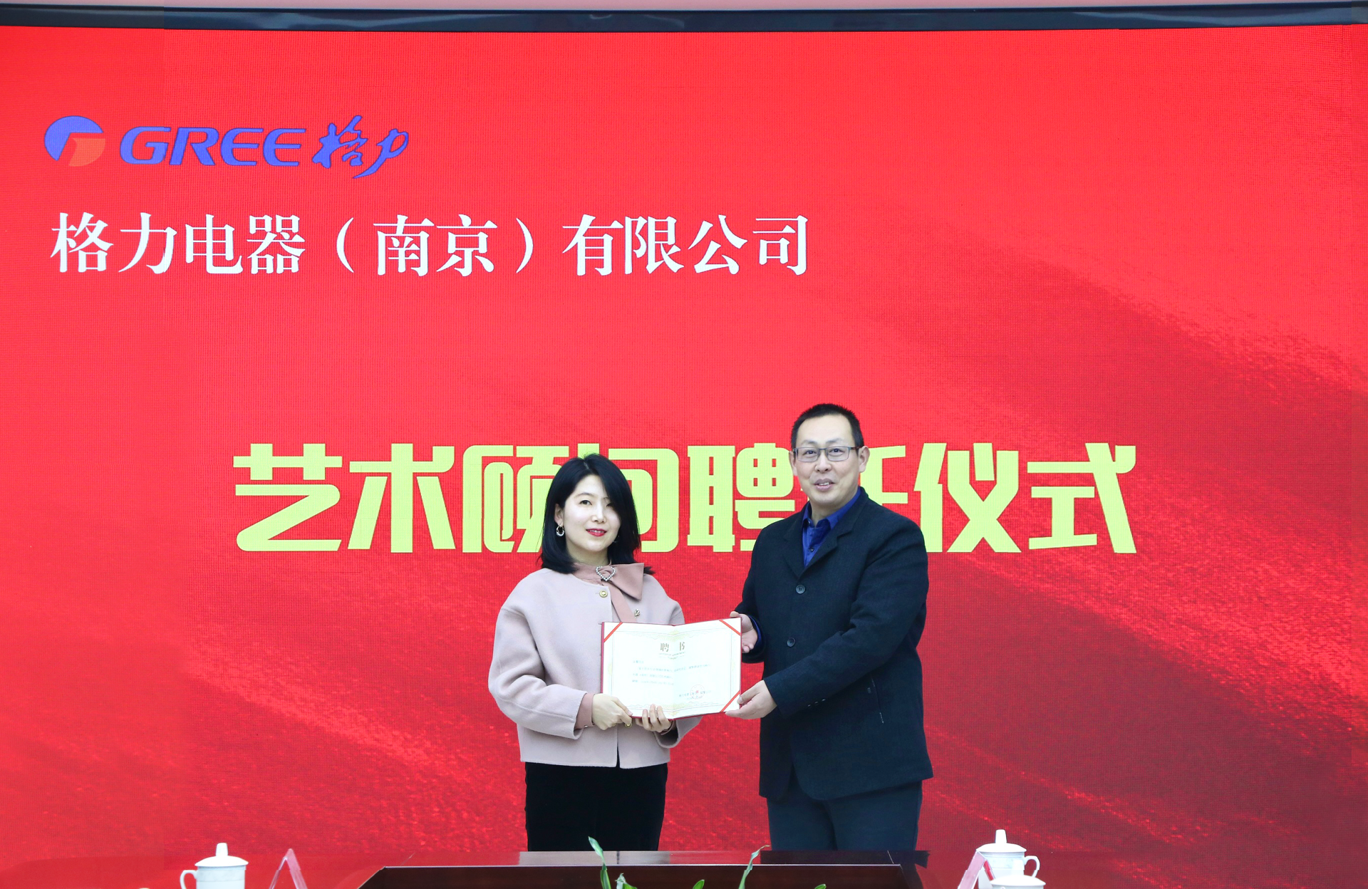 产业教授、艺术顾问聘任仪式暨正德-格力产业学院表彰会伊始,集体观看“正德-格力产业学院两周年专题片”,视频回顾了产业学院两年来的建设和发展历程。为强化“双师型”教师队伍建设,深化企业员工与未来员工融通培养、推动企业高级专家深度参与91自拍 专业建设、科学研究、人才培养与教育教学,推动91自拍 教师服务企业、深度参与公司艺术活动指导,现场举行了91自拍 产业教授聘任仪式和格力电器(南京)有限公司艺术顾问聘任仪式。格力电器(南京)有限公司总经理刘克光受聘担任91自拍 产业教授,91自拍 教师孟馨受聘担任格力电器(南京)有限公司艺术顾问。