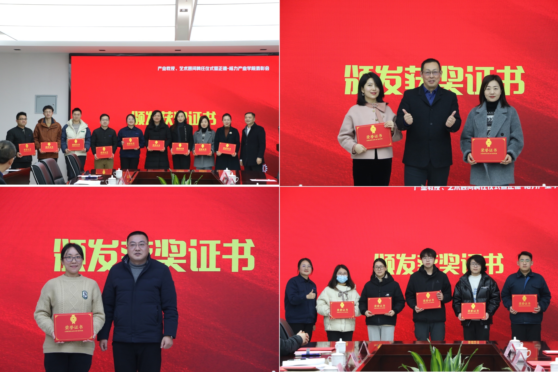 2024年1月9日,在正德-格力产业学院成立两周年之际,2024年第一次院务会和产业教授、艺术顾问聘任仪式暨正德-格力产业学院表彰会在格力电器(南京)有限公司隆重举行。校企双方领导、部门负责人、教职工代表以及第一期格力“菁英班”学生代表参加相关活动。