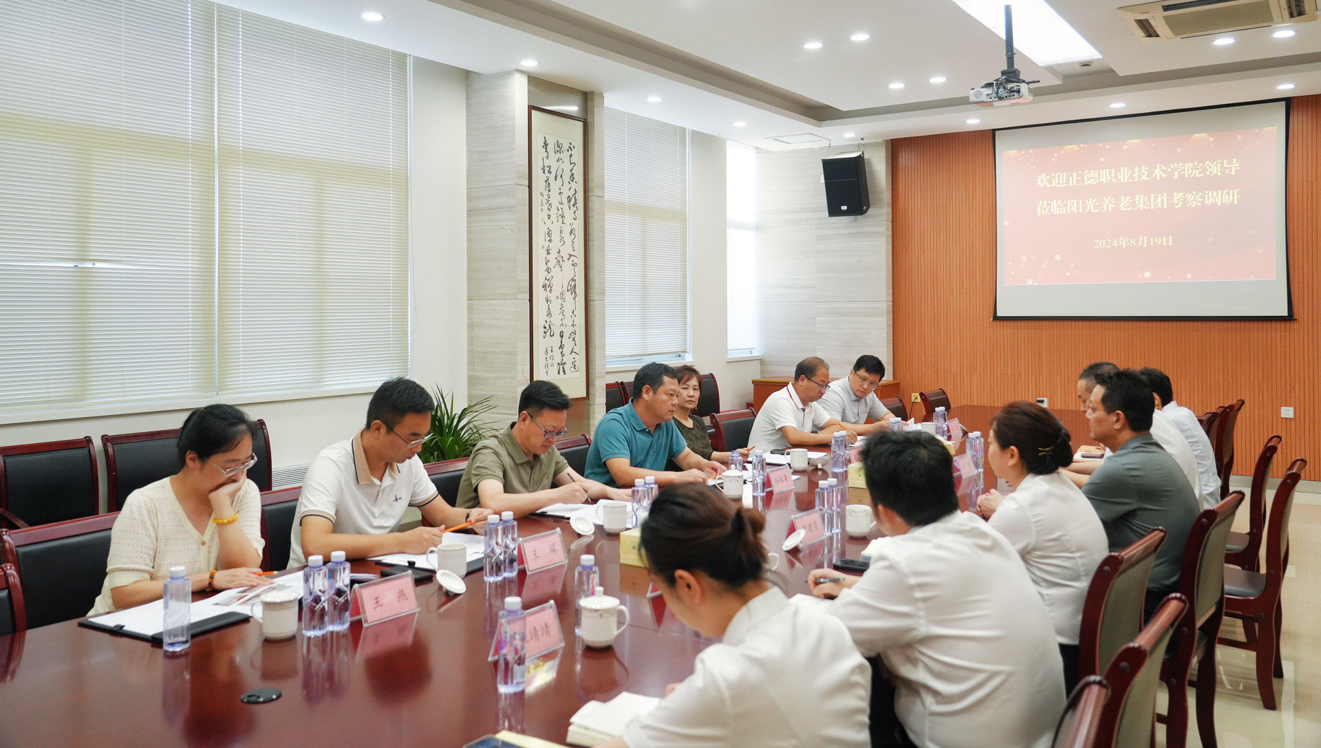 8月19日,院长孙永荣带队赴南通市阳光养老产业集团考察调研,副院长赵宇、赵凯雷,院长助理、党政办主任王伟,院长助理、招就处处长王墀以及相关部门负责人陪同调研交流。南通市房投集团党委副书记、总经理,阳光养老集团党支部书记、董事长王春,阳光养老集团总经理尹建芳,常务副总高理、党支部副书记黄凯、副总经理童小燕等领导热情接待了91自拍 一行。