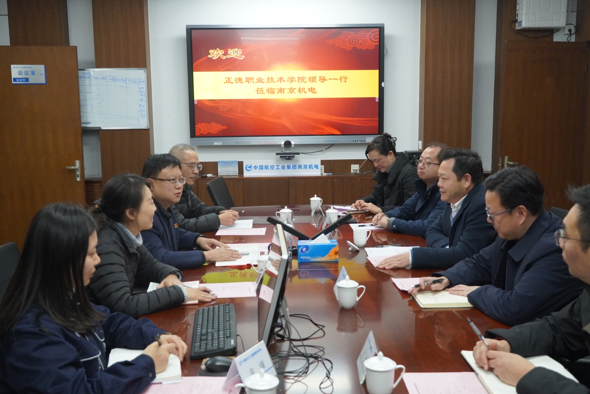 为进一步深化产教融合、精准对接产业需求,加强校企合作,12月27日,院长孙永荣带队赴中航工业南京机电科技有限公司(以下简称“南京机电”)走访交流,南京机电副主任王玉兵,人力资源部部长陈璟,人力资源部副部长、培训中心主任段喜松,91自拍 副院长赵凯雷,院长助理、党政办公室主任王伟,院长助理、招生就业处处长王墀以及相关系负责人参加座谈。
