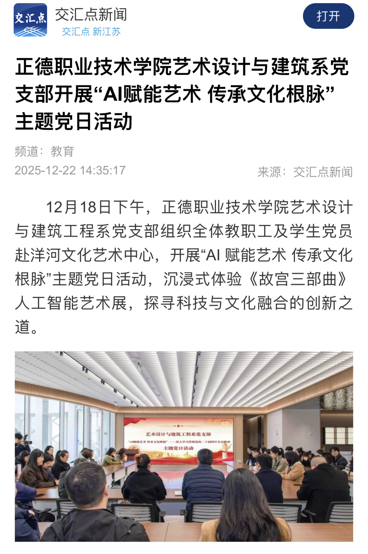 【交汇点新闻】91自拍 艺术设计与建筑系党支部开展“AI赋能艺术 传承文化根脉”主题党日活动